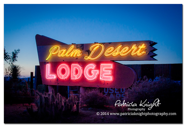 palm desert neon sign at bungalow in the boulders in joshua tree